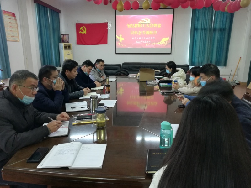 225日下午,电气工程与自动化学院召开意识形态工作暨中心组(扩大)第一次学习专题会议,会议审议通过了2021年学院意识形态工作专题报告,全体教职工参加了本次会议。会议由党总支书记张国祥主持。