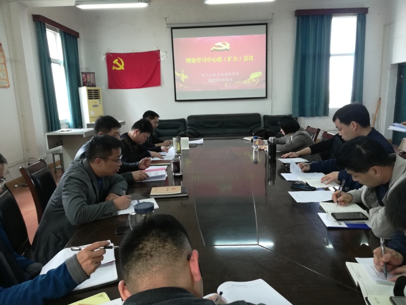 3月10日下午,电气工程与自动化学院在学院会议室召开理论学习中心组(扩大)第二次学习会议。会议由党总支书记张国祥主持,中心组成员、教职工党员代表、民主党派成员和无党派人士代表参加了本次学习。