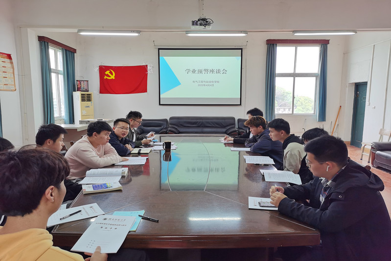 为进一步加强我院的学风建设,强化学业预警的管理和帮扶举措,电气工程与自动化学院于2022年4月4日16时在自控大楼会议室开展了学业预警座谈会,出席本次座谈会的有电气学院辅导员任小聪、黄新望,以及学院本学期学业预警同学。