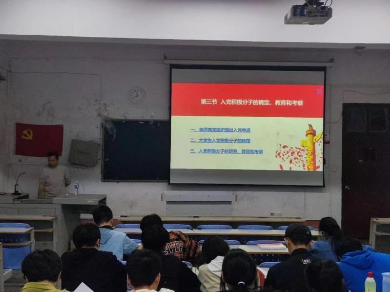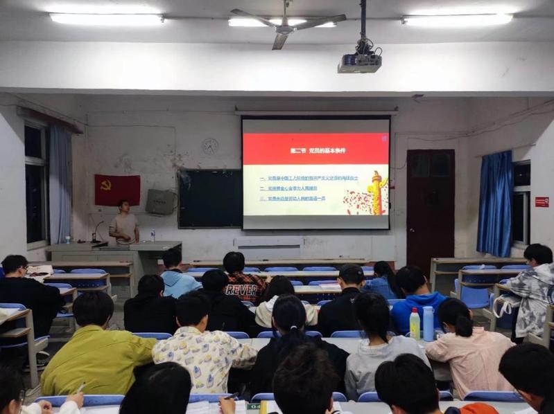 本次党课主题为:“明确标准,申请入党”,彭舟同志从申请入党的条件、党员的基本条件、入党积极分子的确立教育和考察、入党流程及注意事项四个方面系统地讲述了大学生入党须知及注意事项。他向全体积极分子介绍了大学生的入党流程,告诫每位学员要认真对待入党的每一个环节,并分享了时代楷模黄文秀、支月英等优秀党员的先进事迹,呼吁全体学员要向他们学习,做到在思想和行动上入党。党课期间,同学们注意力高度集中、认真听讲,并做好学习笔记。最后,彭部长鼓励大家要积极学习、不断提升自己,争取早日成为一名合格的共产党员。