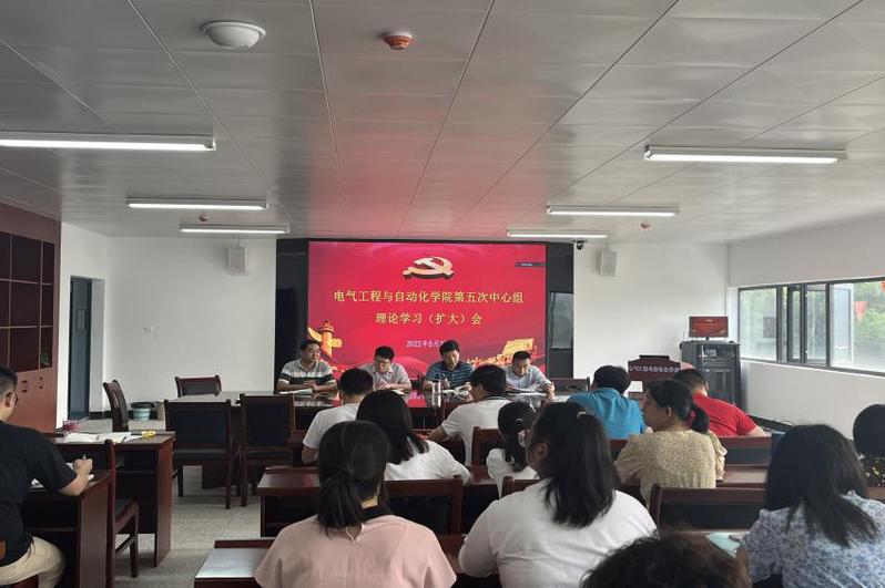 6月23日下午,电气工程与自动化学院在学院会议室召开理论学习中心组(扩大)第五次学习会议。会议由党总支书记张国祥主持,中心组成员、全体教工党员、民主党派成员和无党派人士代表参加了本次学习。