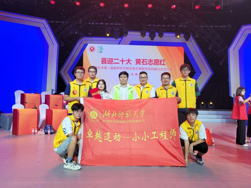 喜迎二十大,黄石志愿红。为进一步培育志愿服务项目,打造志愿服务品牌,深化新时代文明实践志愿服务工作,2022年8月26日,黄石市第二届新时代文明实践志愿服务项目(展示交流)大赛决赛在黄石广播电视台800㎡演播精彩上映。我院“卓越迈动——小小工程师”团队打造的小小卓越工程师志愿服务项目在历时三个多月经过初选、集中培训,决赛中近2个小时的比拼后,斩获了金奖的好成绩。