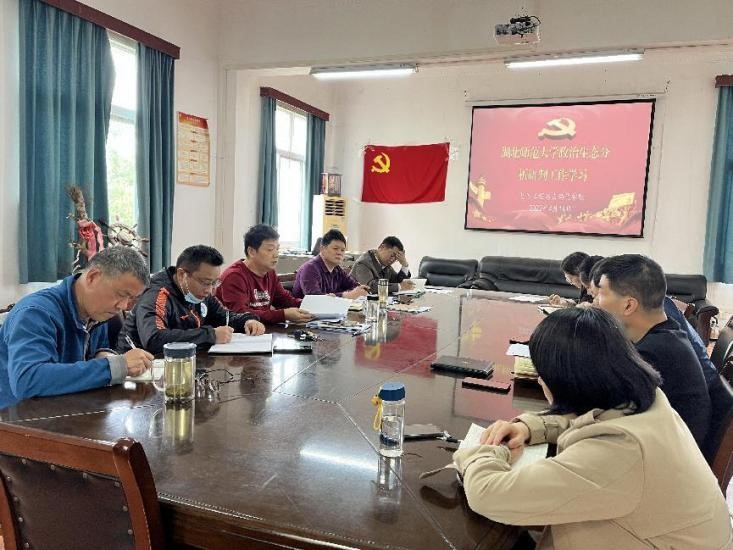 张书记对湖北师范大学委员会开展政治生态分析研判工作的实施方案及开展政治生态分析研判工作的意见两份文件进行了领学,从政治研判工作的总体要求、对象和内容、研判职责分工、研判实施步骤及工作要求等几个方面作了解读。