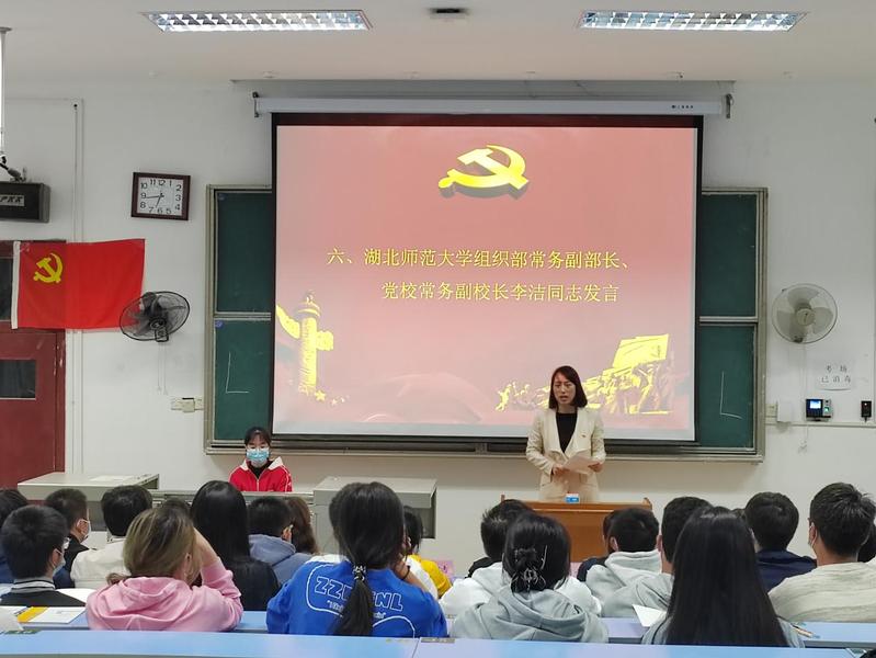 为深入学习习近平新时代中国特色社会主义思想,宣传贯彻党的二十大精神,2022年11月8日18时30分,电气工程与自动化学院分党校在教育大楼1J23教室举办了第30期入党积极分子培训班开班典礼暨党课第一讲。湖北师范大学组织部常务副部长、党校常务副校长李洁同志,电气学院党总支书记、分党校校长张国祥同志,学生第二党支部书记任小聪同志和学生第三党支部书记黄新望同志参加了本次开班典礼。