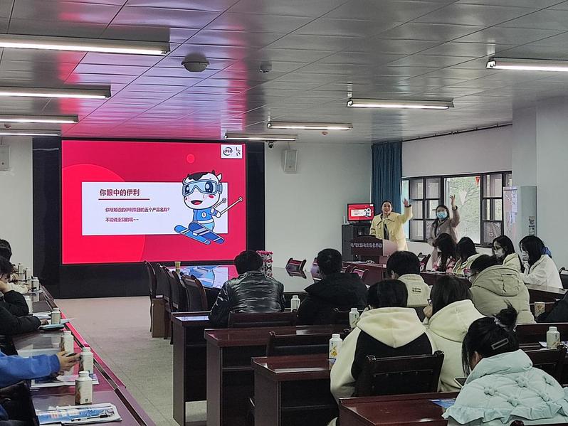 宣讲伊始,湖北黄冈伊利乳业有限公司倪专员通过播放企业介绍视频,介绍了公司的中控室、灌装车间、包装车间和生活区等多个地区,使得同学们对公司有了一个大概的认知。接着通过一个小问答环节来活跃现场的气氛,减少了同学们的陌生感。随后从“大家眼中的伊利”、“我们需要怎样的你”、“我们能给你带来什么”这三个方面详细介绍了公司的实力与环境以及公司对员工的要求和帮助。