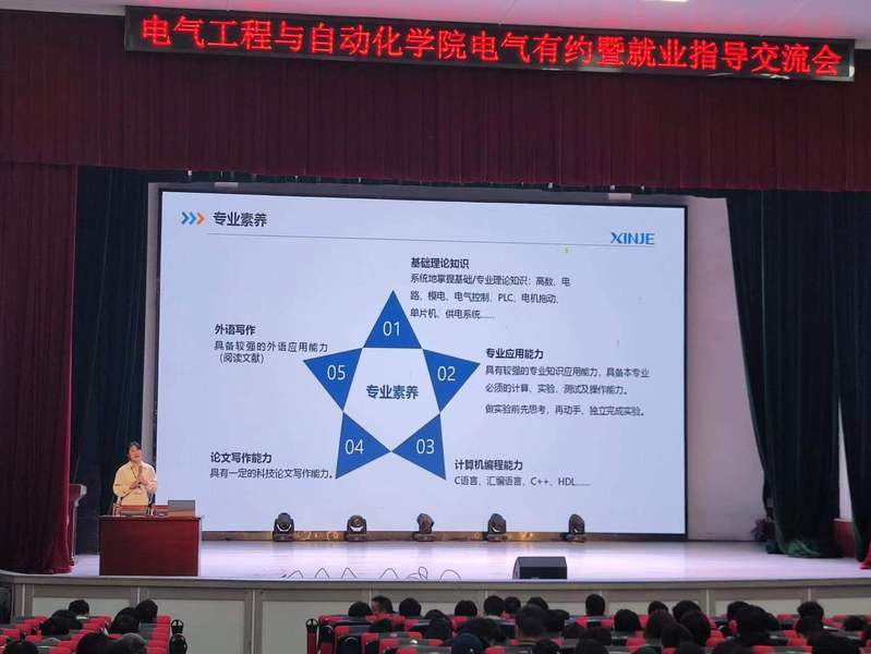 为引导学生正确认识当前就业形势,扎实推进大学生就业指导工作,为未来规划谱写绚丽画卷,电气工程与自动化学院特邀无锡信捷电气股份有限公司于31314时在湖师大礼堂顺利开展第三十七期“电气有约”暨就业指导交流会。参与此次活动的有无锡信捷电气股份有限公司资深人事万诗琪、工程技术专员吴昊,学院党总支副书记陈江华,辅导员黄新望、任小聪,以及学院全体2020级学生和部分数学与统计学院学生。