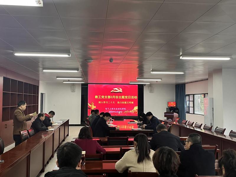 为深入学习贯彻党的二十大精神,323日下午,电气工程与自动化学院教工党支部在大数据中心341会议室开展“深入学习二十大,助力创建文明城”主题党日活动暨2022年度组织生活会。活动由支部书记杨青胜同志主持,支部教工党员参加活动。
