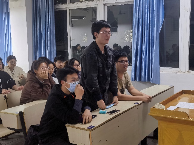观影结束后主持人邀请几位入党入党积极分子主动站起来谈自己的看法和体会,2102班的刘星宇同志说到:看了一场电影,也上了一堂生动的教育课。纵观现今世界,风险无处不在。我们唯一能做的,就是坚守自己的“战位”,坚守那份“执着”,让他们的付出“值得”。