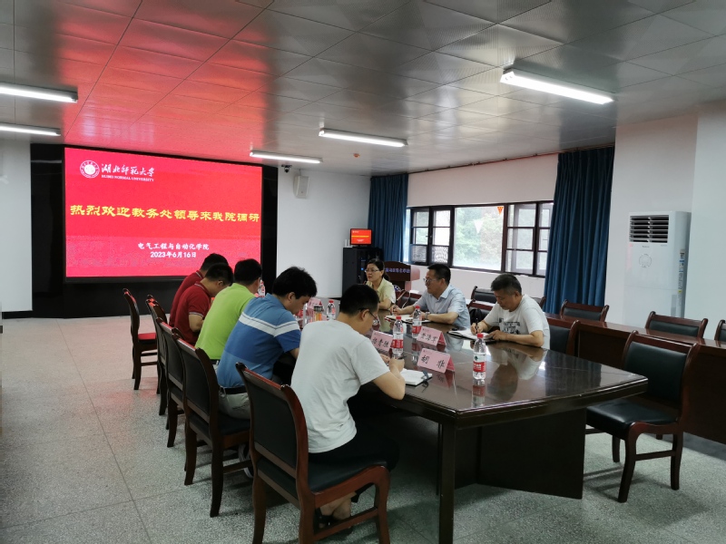 2023年6月16日上午,教务处胡艳军处长一行来我院就一流专业建设的研究与实践、劳动教育课程体系研究与实践等两方面工作进行调研。教务处副处长黄海军,教研科负责人和我院院长詹习生、各系主任、实验室主任、教学办负责人等参加会议。