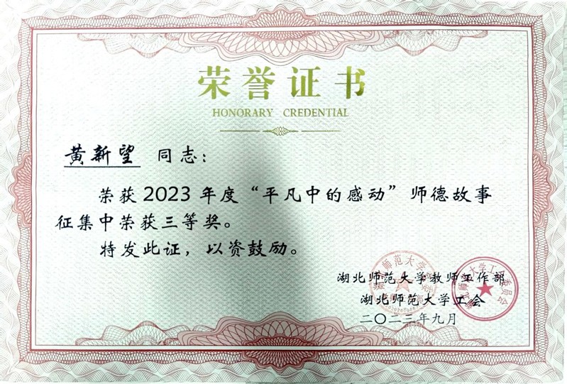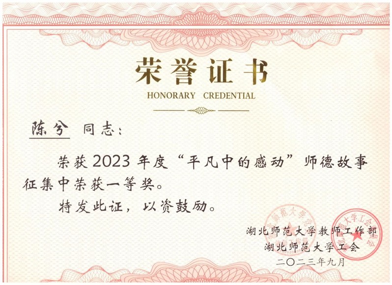 近日,由校教师工作部、工会联合开展的“平凡中的感动”师德故事征集评选结果公布,我院陈兮、黄新望等两位教师分获一、三等奖。