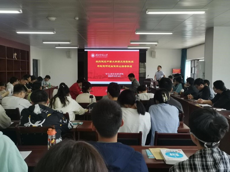 10月16日上午,我院特邀请中南大学博导胡文峰副教授在产教融合中心24341会议室为研究生开展了一次学业指导讲座,旨在帮助我院研究生更好地培养自信、激发科研潜力,讲座由学院副院长韩涛博士主持。