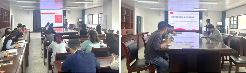 在微党课环节,胡惠敏同志领学了《学习贯彻习近平在浙江考察时的重要讲话精神》。李维同志进行了廉政宣讲,讲述了习近平总书记在中国共产党与世界政党高层对话会上的主旨讲话中引用的“万物并育而不相害,道并行而不相悖”的原典与释义,告诫大家要有接受、尊重与包容不同事物之间的差异性和多样性的胸怀,还结合《中华人民共和国治安管理处罚法》以及湖北省黄石市人大常委会原党组副书记、副主任王新华被开除党籍和公职等典型案例,以案示警、以案为戒。陈兮同志进行了“以案说德”师德师风教育宣讲,领学了习近平总书记教师节重要指示精神及师德师风典型案例,教育大家始终铭记“学高为师,身正为范”,为创建特色鲜明、国内一流、高水平的师范大学而努力。朱军同志围绕习近平总书记关于高等教育的重要论述,联系思想、工作实际和具体事例开展了研讨交流。