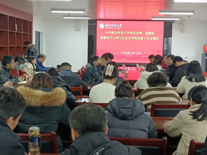 1月15日上午,中共湖北师范大学委员会第一巡察组巡察电气工程与自动化学院党委工作反馈会在产教融合中心24341会议室召开。校纪委副书记、党委巡察办公室主任许光和副主任杨蕾,校党委第一巡察组组长王舒怀和副组长林松、王新忠及联络员卢梦,电气工程与自动化学院领导班子成员、全体教职工参加会议。会议由电气工程与自动化学院党委书记丁桂兰主持。