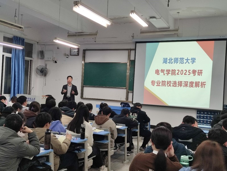 为加强学院学风建设,推动学生科学备考,3月18日晚,电气工程与自动化学院在科技大楼9810举办电气学院2025年考研专业院校选择深度解析分享会,会议邀请考研备考专家、仁信教育董事长李灵富进行分享,参加本次分享的还有学院辅导员黄新望,学院2021级电气专业全体同学。