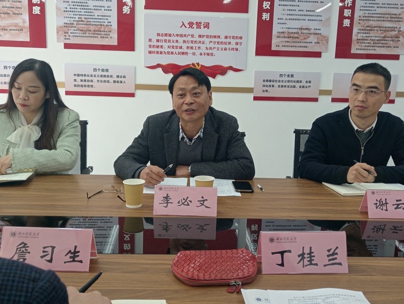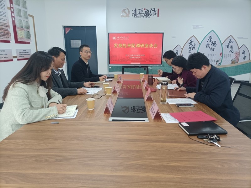 312日下午,校发展规划与学科建设处处长李必文、副处长谢云龙等一行三人来院调研目标管理考核和学科建设工作。学院党委书记丁桂兰、院长詹习生、副院长韩涛等参加调研座谈会。