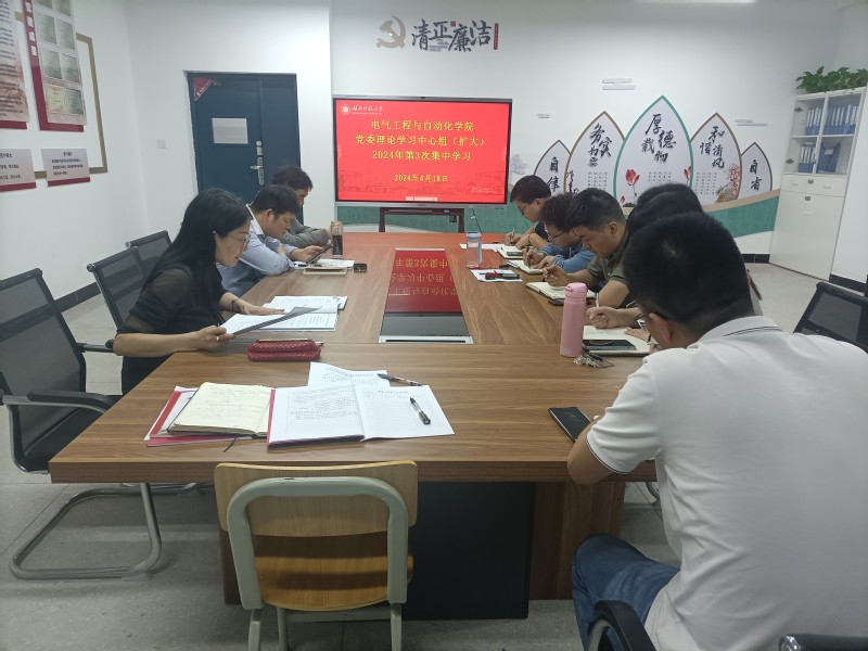 4月18日下午,电气工程与自动化学院党委理论学习中心组在产教融合中心24324会议室召开2024年第三次集中学习(扩大)会议。全体院领导、院长助理,学院党委理论学习中心组成员,党政办、分工会负责人,各党支部、团总支负责人参加会议。会议由院党委书记丁桂兰主持。