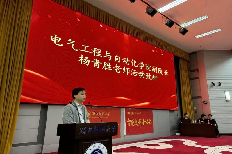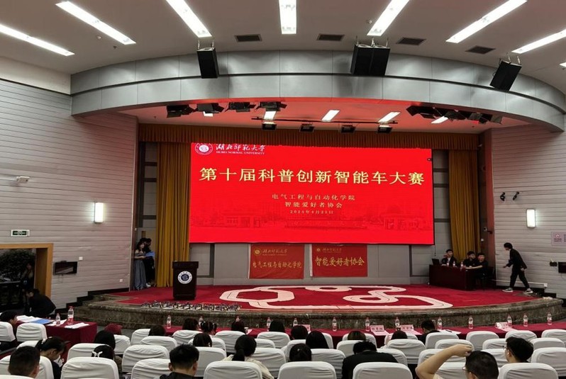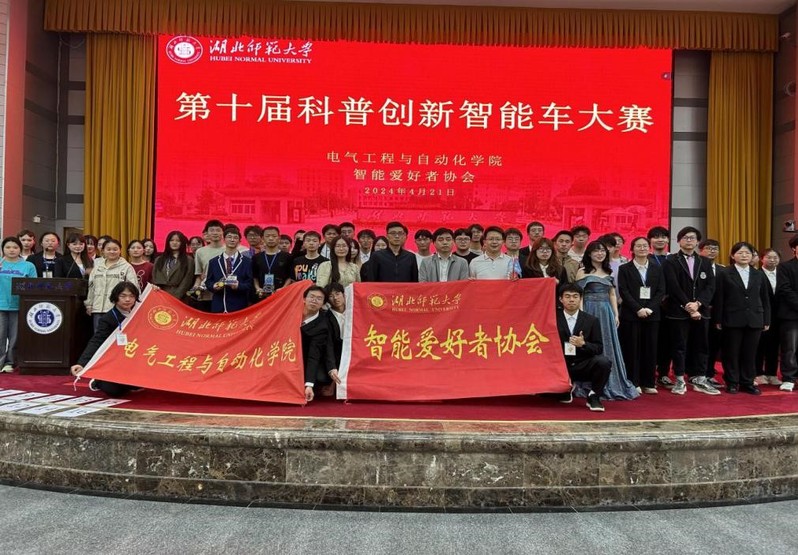 为培养学生创新能力,激发学生科技竞赛热情,4月21日晚,由校团委和电气工程与自动化学院主办,智能爱好者协会承办的湖北师范大学第十届科普创新智能车大赛决赛暨颁奖典礼在教育大楼报告厅圆满落幕。校团委副书记周家吉、电气工程与自动化学院副院长杨青胜,辅导员黄新望、刘芳芳、专任教师代表等参加活动。