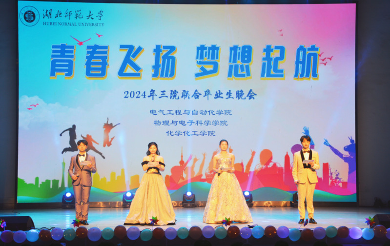 蕙风如薰,花开半夏,骊歌轻起,毕业又至。回眸岁月,展望未来,壮志雄飞,青春不散。5月11日晚,由电气工程与自动化学院主办,物理与电子科学学院、化学化工学院协办,主题为“青春飞扬,梦想起航” 的2024年三院联合毕业生晚会在湖师大礼堂隆重举行。