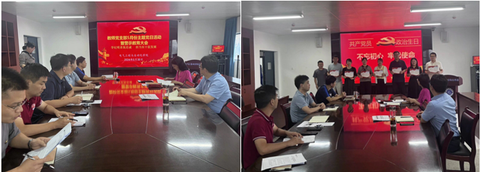 活动中,支部党员按月交纳了党费,在康玉红同志带领下重温入党誓词,在林萍同志带领下集体诵读《中国共产党章程》第一章第九条。陈兮同志为韩涛、吴杰、康玉红、蔡林、肖波、林萍、颜乐等7位同志赠送“政治生日”贺卡并合影留念。7位同志依次发言,表达了不忘入党初心、牢记育人使命、勤奋敬业、扎实工作的决心。