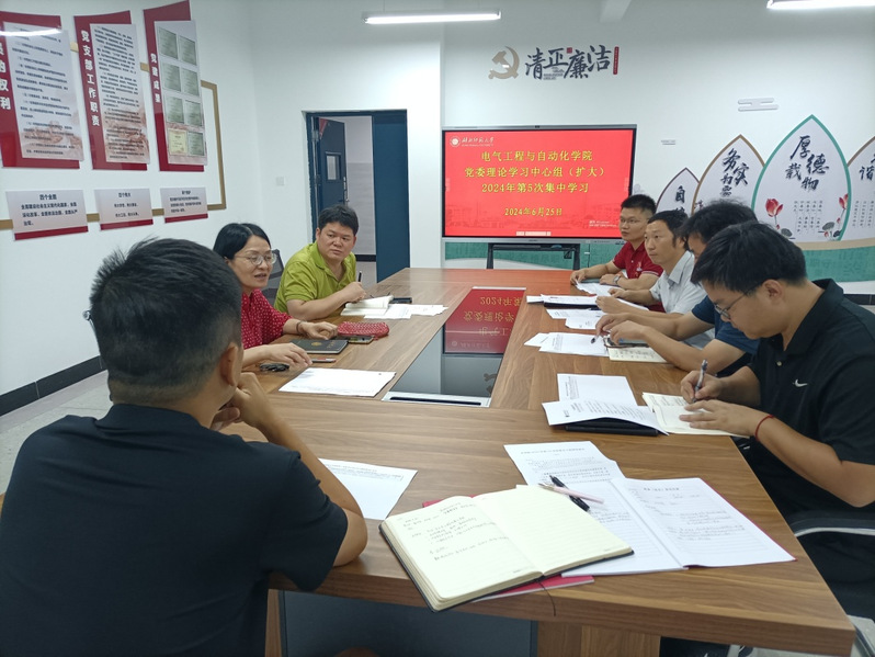 6月25日上午,电气工程与自动化学院党委理论学习中心组在产教融合中心24324会议室召开2024年第五次集中学习(扩大)会议。全体院领导、党委委员,学院党委理论学习中心组成员,党政办、分工会负责人,各党支部、团总支负责人参加会议。会议由院党委书记丁桂兰主持。