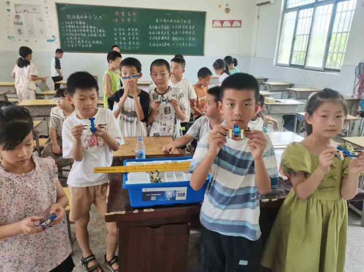 支教队员们精心准备了内容丰富、形式多样的课程,开设了体育、手工、绘画、化学、物理、生物等课程。同时,小小工程师科技志愿实践队与黄石市机器人协会合作,开设机器人搭建课程,用生动有趣的方式引导孩子们探索科学的奥秘,为孩子们带来一场“科技盛宴”。为夯实学习基础,支教队员们还增设了语文、数学和英语三门基础课程的个性化辅导,为孩子们搭建起通往知识殿堂的坚实桥梁,而孩子们求知若渴的眼神是对本次活动最好的回应。