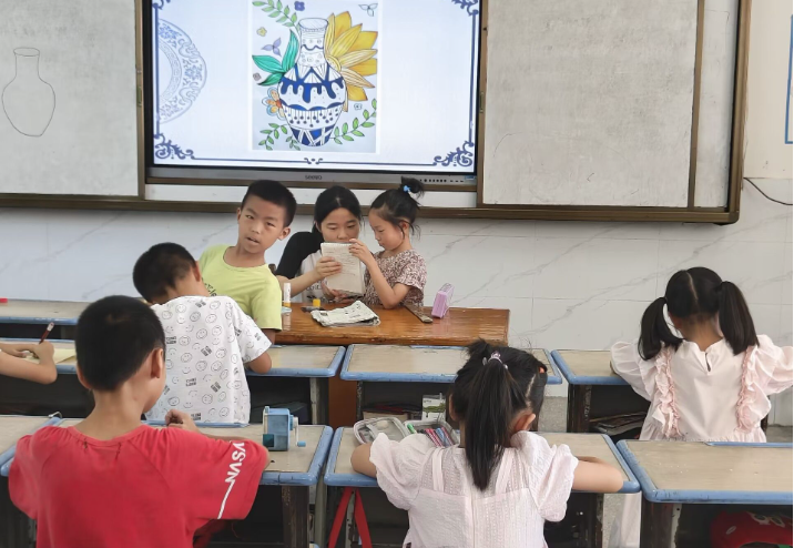美育,是滋养孩子心灵的甘露。支教队员以画笔为媒,引导孩子们描绘出五彩斑斓的世界——漂亮的小金鱼在水中嬉戏,鲜美的西瓜跃然纸上……每一幅作品都代表了孩子们内心至善至美的纯真,展现了他们对美的追求与理解。在美育的熏陶下,孩子们的心灵之花得以更加绚丽地绽放。