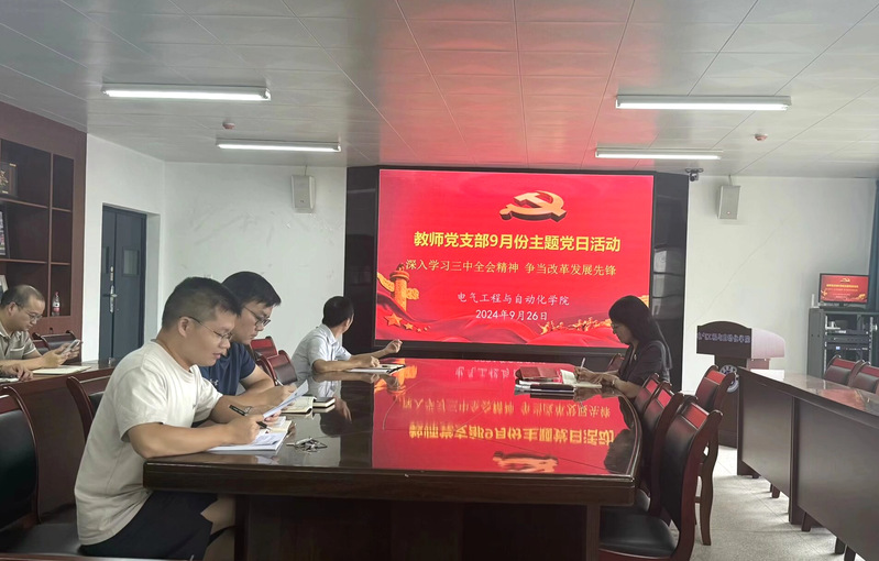 9月26日下午,电气工程与自动化学院教师党支部在24341会议室开展9月份主题党日活动,活动主题为“深入学习三中全会精神 争当改革发展先锋”。学院全体教师党员和入党积极分子参加活动,活动由支部书记陈兮同志主持。