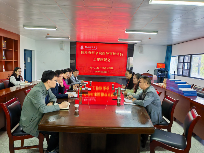 10月25日,在产教融合中心24341会议室,校教学督导委员会专职委员周秋莲,纪委、监察专员办公室纪检监察室主任陈江华,党委巡察办公室副主任杨蕾一行对电气工程与自动化学院新一轮本科教育教学审核评估工作开展情况进行检查督导。电气工程与自动化学院党委书记丁桂兰,院长詹习生,党委副书记金高辉,副院长杨青胜、韩涛,院党政办负责人、全体教学秘书参加相关座谈会。