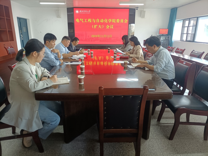 11月11日下午,电气工程与自动化学院在产教融合中心24341会议室召开党委会(扩大)会议,传达学习习近平总书记考察湖北重要讲话精神。院领导、党委委员、党政办负责人、各党支部书记参加会议。会议由院党委书记丁桂兰主持。