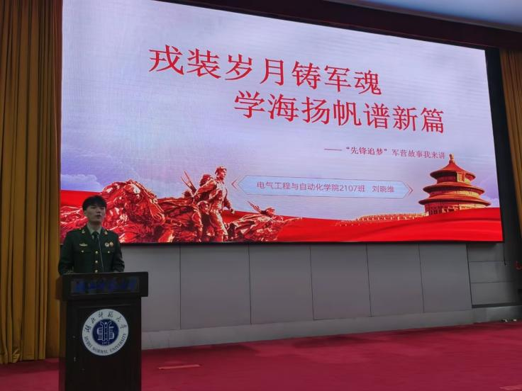 随后,刘晓维、张浩龙和柯学谦分别分享了自己在军营中的经历以及成长故事。他们用真挚的情感和生动的语言,讲述了自己在军营中的历练与收获,以及退役后如何将军人精神应用到学习和生活中。他们的故事不仅感人至深,更激发了在场学生对军旅生活的向往和对国防事业的热爱。