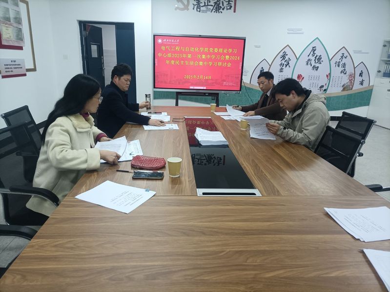为深入学习贯彻习近平新时代中国特色社会主义思想和党的二十届三中全会精神,巩固深化党纪学习教育成果,打牢开好2024年度党员领导干部民主生活会的思想基础, 2月14日下午,电气工程与自动化学院党委理论学习中心组在产教融合中心24324会议室召开2025年第一次集中学习会暨2024年度民主生活会集中学习研讨会。院党委书记丁桂兰主持集体学习并讲话,全体院领导参加学习,院党政办负责人列席会议。