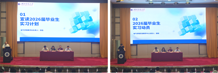 为切实做好2026届学生实习与就业工作,帮助学生明确实习目标与职业规划,6月12日下午,电气工程与自动化学院在教育大楼学术报告厅隆重召开 2026 届学生毕业实习暨就业动员大会。学院党委书记严海燕、副书记金高辉,系主任、学院相关部门负责人、实习骨干指导教师、辅导员、2026届毕业班班主任、实习企业代表及2026届全体学生参加。会议由学院副院长杨青胜主持。