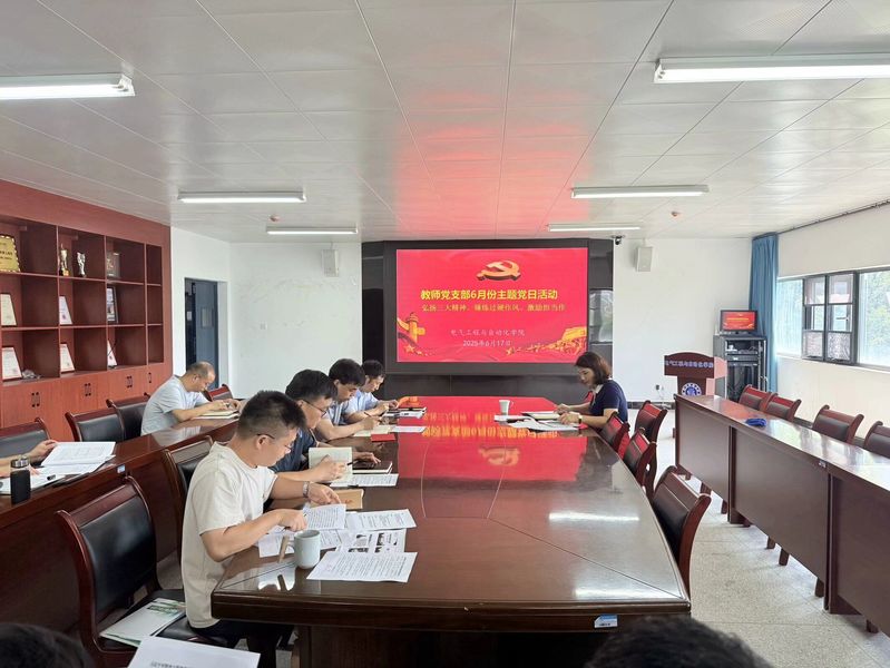 6 月 17 日下午,电气学院教师党支部在产教融合中心会议室 24341开展6月主题党日活动。本次活动主题是“弘扬三大精神、锤炼过硬作风、激励担当作为”,由院教师党支部书记陈兮主持,全体教师党员及入党积极分子共同参与。