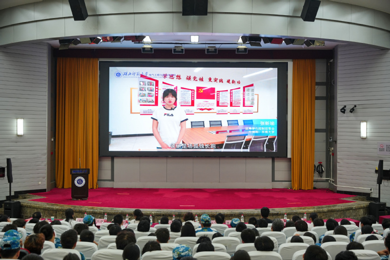 现场还播放了一段特殊的“学长学姐祝福视频”,视频中展示了学院2025届毕业生的亮眼成绩:312名本科毕业生中,42人考研至东南大学、武汉大学等名校,43人入职国家电网;27名硕士毕业生里,10人考取“双一流”高校博士研究生,考博升学率居全校首位。这些耀眼的成绩,不仅是学长学姐们努力的见证,更是激励新生奋勇向前的强大动力。