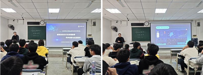 孔工进一步展示了自动化技术的前沿应用与智能化转型趋势。他围绕高压开关柜状态感知、配电室巡检机器狗、智能供配电系统等实战案例,阐释自动化在提升安全性、可靠性与运维效率方面的价值。在讲解SCADA系统与DCS、PLC协同作业时,他强调“数据是新时代的电流,而系统是让它流动的电网”。随后,孔工引领同学们展望人工智能四次发展浪潮与大模型技术的突破,指出ChatGPT、DeepSeek等模型正重塑办公、评审、财务等场景,实现“化繁为简”。他举例提到,智能评标系统效率进一步提升,AI+RPA实现报销自动化,认知大模型正成为自动化系统从“执行”走向“认知”的关键推力。