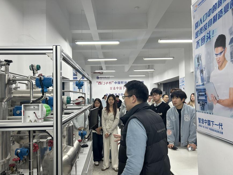 最后,指导教师带领大家走进学院西门子竞赛实验室,并就各赛项的比赛设备进行介绍和答疑。现场学子认真听取教师讲解,不时交流讨论,部分同学还拿出笔记本记录。本次参观过程氛围轻松热烈,同学们对竞赛设备有了更直观的认知。