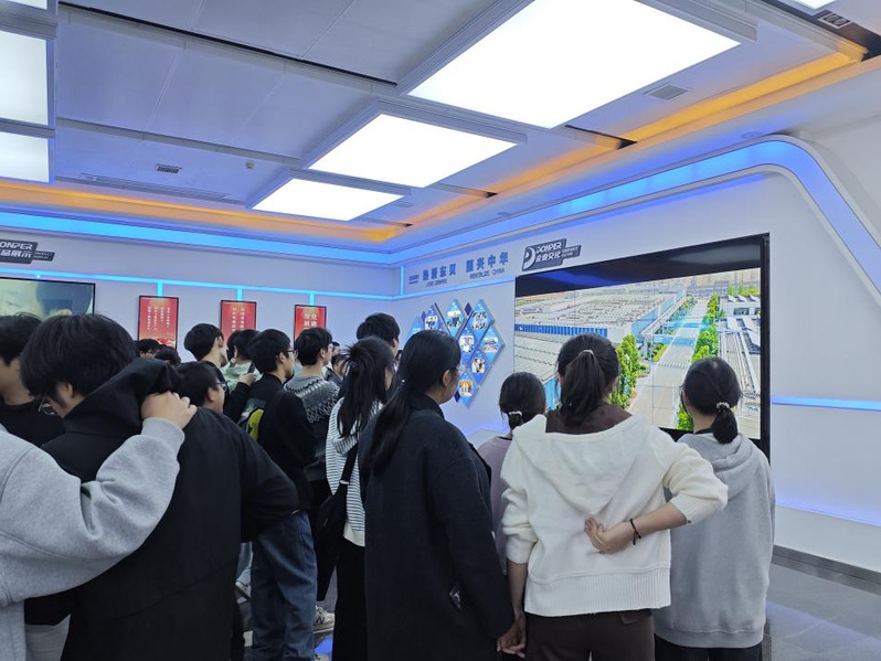 在东贝压缩机公司,2401、2402 班同学们先是通过企业宣传片全面了解了公司在技术研发、市场布局及未来发展战略等方面的突出成就,随后在严格遵守安全规范的前提下,有序进入生产车间开展实地观摩。沿着生产线,同学们依次见证了从精密零部件加工、自动化装配到产品性能检测的全流程关键工序、近距离观察电机转子、定子结构与制造工艺。车间内高度自动化的生产设备、精准高效的控制系统以及流畅的生产节拍,生动展现了电气传动、自动控制、传感检测等核心技术在现代化工业制造中的深度融合与应用,让同学们对专业技术的工业价值有了更深刻的理解,留下了深刻印象。