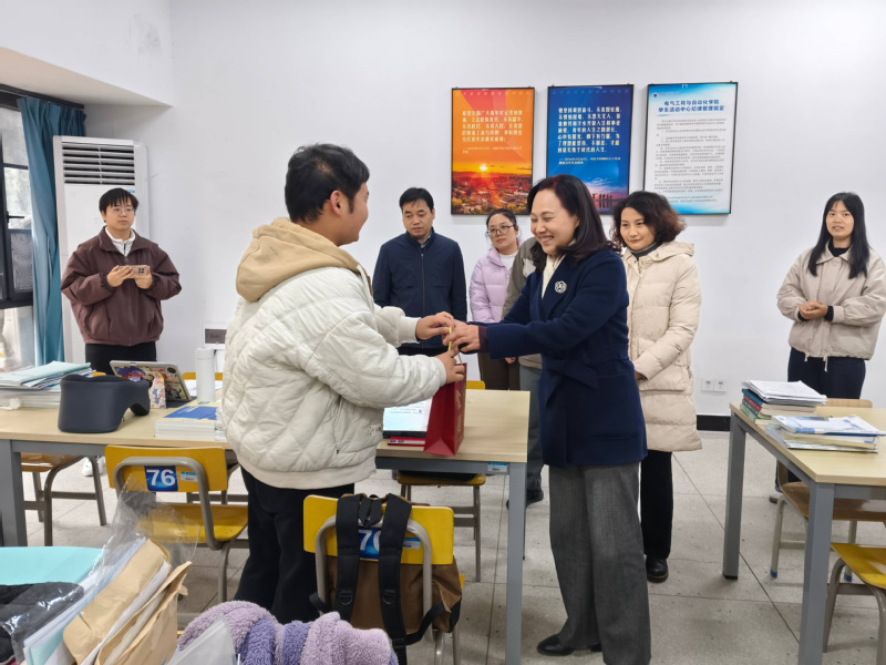 2026年全国硕士研究生招生考试进入最后冲刺攻坚阶段,为传递学校关怀、坚定学子备考信念,12月4日下午,校党委常委、纪委书记陆咏梅在电气工程与自动化学院领导班子成员严海燕、高红亮、金高辉、杨青胜、程伶俐及全体辅导员的陪同下,深入产教融合中心24213考研自习室与“一站式”学生社区,开展暖心慰问与工作调研。