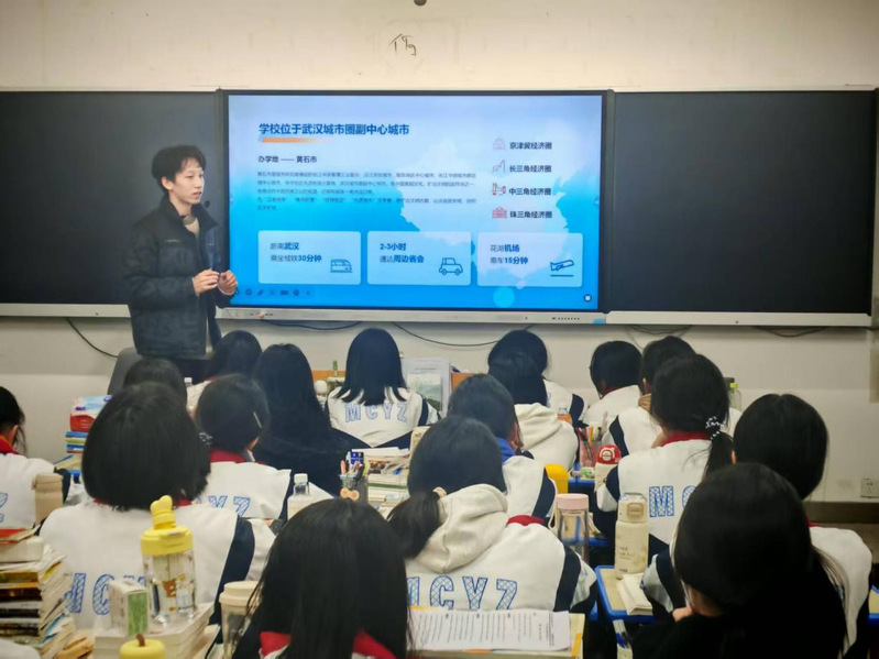 为进一步加强学校与生源高中的联系,展现湖师学子风采,讲好湖师大故事。2026年1月15日晚,电气工程与自动化学院2306班付程洋,携手数学与统计学院2302班许文佶,重返母校麻城一中,在高三年级开展了以“情系母校,筑梦湖师”为主题的寒假返校宣讲活动。